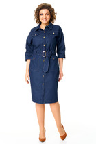 Платье женское прямого силуэта втачного покроя. По спинке и переду отрезная кокетка. На полочках накладные карманы. Застежка на петли и пуговицы. На талии настрочена кулиса. Рукав короткий.