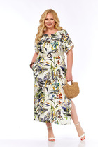 Платье женское, из нежного шифона расширенное к низу, с втачным рукавом. Застежка на петли и пуговицы, по горловине рубашечный воротник. Рукав 3/4 свободного кроя со сборкой по окату и низу. Платье с завышенной линией талии, притачной кулисой и поясом. По нижней части переда и спинки мягкие складки. Перед и спинка платья на трикотажной подкладке. Фурнитура может меняться в зависимости от наличия.