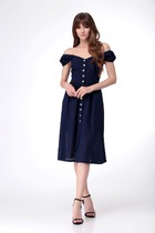 Платье А-силуэта, отрезное по линии талии. Платье - из струящейся принтованной плательной ткани. Перед лифа со средним швом и отложным цельнокроеным воротничком, выполненным из контрастной однотонной хлопковой ткани. По переду и спинке лифа расположены рельефы. В среднем шве спинки предусмотрена молния. Рукав втачной короткий формы «тюльпан».