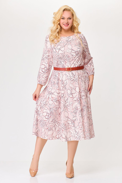 Платье Swallow 674.1 розовый в принт «бежевый сад»