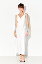 Платье из тонкого текстиля Х-образного силуэта, отрезное по линии талии.