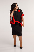 Платье из эластичного трикотажного полотна полуприлегающего силуэта. По переду обработаны нагрудные вытачки. Спинка цельнокроеная. Рукав втачной одношовный длиной 4/5 с манжетой из декоративного трикотажного довяза. В боковых швах обработаны карманы. Горловина V-оборазной формы, обработана декоративным трикотажным довязом.