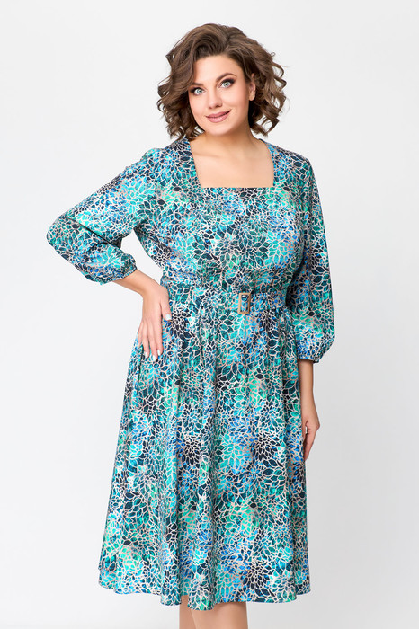 Платье Swallow 711 бирюзово-бежевый принт