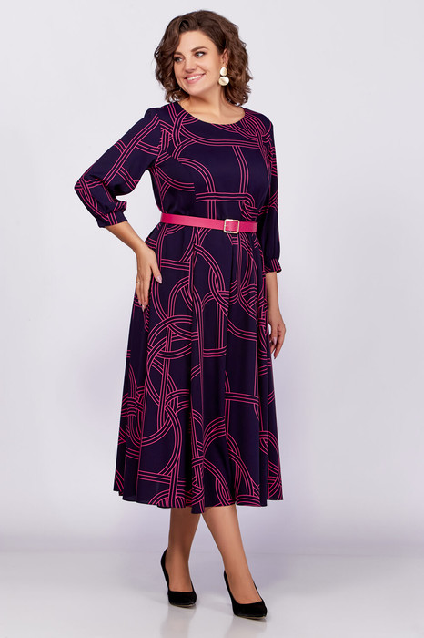 Платье Swallow 779.1 темно-синий+принт фуксия геометрия