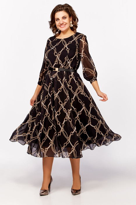 Платье Swallow 792.2 черный/принт бежевые цепи