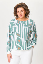 Блузка из мягкой вискозной ткани свободного силуэта со спущенной линией плеча. Горловина по полочке округлой формы, по спинке – V-образный вырез, который соединён планкой. Рукав втачной, длинный. Низ блузки и низ рукавов присобраны на декоративный трикотажный довяз.