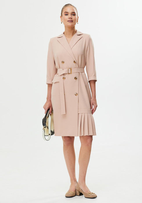 Элегантное двубортное платье который сезон будоражит умы дизайнеров. Яркое и женственное платье идеально подходит как для офисных луков, так и для вечера в ресторане. Украшение платья служат складочки по нижней полочке платья.