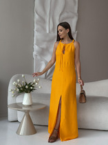 Верхняя часть переда и спинки (лиф) с рельефными швами, идущими из пройм вниз до шва талии. Верхняя часть спинки со средним швом от горловины до низа платья. От горловины вниз в среднем шве расположена застежка на потайную тесьму - "молнию". Верхняя часть переда и спинки на подкладке из плательной ткани.