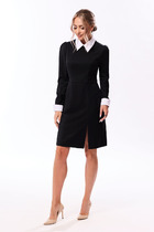 Женственное платье полуприлегающего силуэта изготовлено из плательно-костюмной ткани. Цельнокроенный рукав по низу зафиксирован защипами. Горловина оформлена воротником-стойка По переду планка с застежкой на петли и пуговицы. Модель отрезная по линии талии. Низ ровный, с боку разрез. Модель дополняет пояс с застежкой на петли и пуговицы.