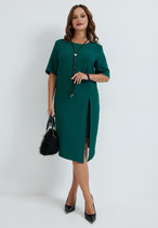 Стильное платье приталенного силуэта. Короткий втачной рукав с отворотом по низу. Горловина оформлена стойкой переходящей в планку с застежкой на петли и пуговицы. Модель отрезная по линии талии на сборке. В боковых швах функциональные карманы. Низ ровный, без разрезов. Пояс из основного материала в комплекте.