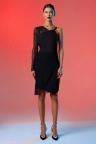 Элегантное платье прямого кроя черного цвета выполнено из воздушной сетчатой ткани с прозрачными рукавами, придающими образу лёгкую игривость. Мягкая вискозная подкладка обеспечивает комфорт, сохраняя при этом эффект полупрозрачности. Универсальный черный цвет делает платье идеальным для базового гардероба.
