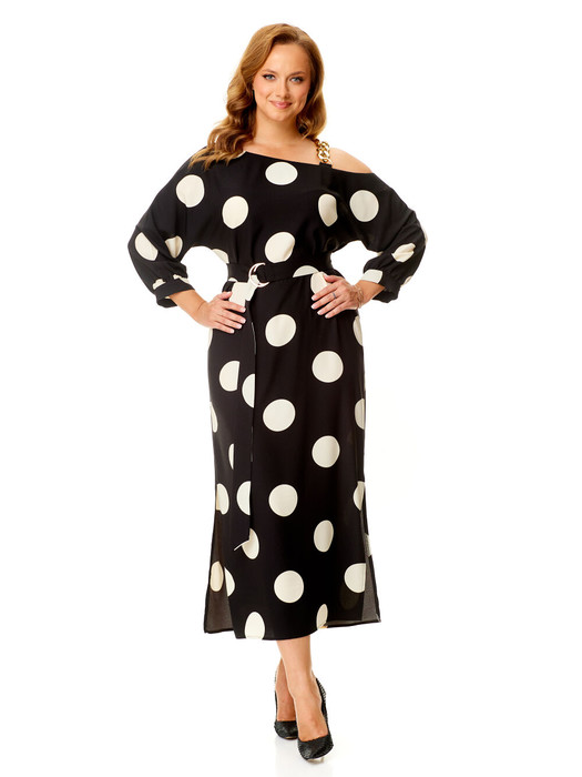 Совместные покупки Нижний Тагил Женская одежда Платья — Платье VI.ORO VR-1141 черный / крупный горох