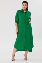 Платье женское А-образного силуэта со спущенной линией плеча. Рукав типа "летучая мышь". Горловина округлой формы. В среднем шве спинки застежка на тесьму-молнию. По переду выполнен ряд ассиметричных подрезов с кантами контрастного цвета и легкая сборка. В боковых швах обработаны карманы. Горловина, низ рукава и платья окантованы тканью контрастного цвета.