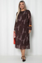 Платье прилегающего силуэта, с округлой формой горловины с ассиметричным подрезом по талии и небольшим напуском. Рукав в платье ассиметричный (левый-цельнокроеный, правый со спущенный проймой через подрез по лифу платья). От подреза притачная баска, юбка платья прямая с разрезом в боковом шве. В боковом шве платья застёжка на тесьму-молнию.Длина платья 135 см. Длина рукава левого 39 см (р.50-54), 40 см (р.56-60). Длина рукава правого 52 см  (р.50-54), 53 см (р.56-60)