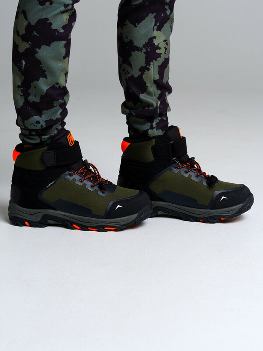 Конструкция верха изготовлена с использованием мембранных технологий. Усиленная защита носка и пятки специальными материалами. Подкладка и стелька выполнены из шерстяного меха 80%. Трехслойная стелька с фольгой, которая обеспечивает сохранение тепла в течение длительного времени. Формоустойчивый задник поддерживает стопу в правильном положении. Подошва имеет противоскользящий протектор. Удобная застежка-липучка и шнурок-утяжка. Рекомендованный температурный режим от 0°С до -20°С.