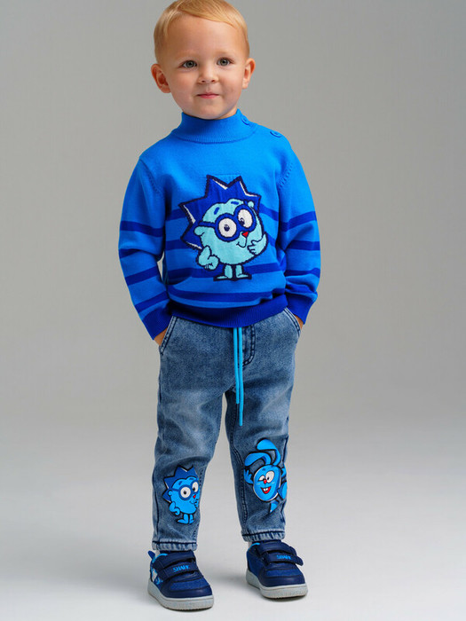 Джинсы детские с флисом для девочки. Модные утепленные джинсы comfort fit (свободная посадка) на резинке со шнурком. Боковые карманы. Модель из капсульной коллекции СМЕШАРИКИ. Соберите полный образ в едином стиле!
