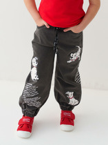 Джинсы из эластичного денима с принтом Disney. Jogger fit – джинсы спортивного силуэта, свободные в области паха со слегка заниженной линией шага, манжетами на щиколотках и средней посадкой на бедрах. Застежка на кнопки. Эластичный пояс со шнурком. Функциональные карманы.