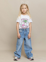 Джинсы для девочки. Эластичный пояс со шнурком. Comfort fit – свободный крой брючин. Накладные карманы с клапанами на боковых швах.