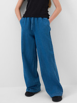 Детские брюки для девочки. Модель прямого кроя, выполнена из мягкого хлопкового трикотажа с эффектом денима. У брюк комфортный пояс на резинке и шнурок для регулировки. Спереди — два удобных кармана.