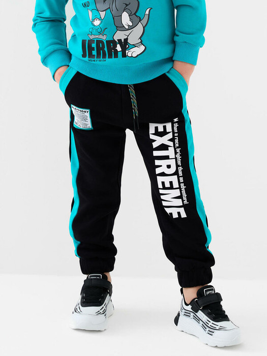 Брюки-джоггеры детские для мальчика. Выполнены из хлопкового трикотажа футер без начеса. Модель прямого кроя со средней посадкой на талии. Пояс выполнен на резинке, дополнительно регулируется шнурком. По бокам — удобные карманы. В нижней части брючин предусмотрены эластичные трикотажные манжеты для лучшей фиксации. Брюки украшены принтами и нашивками в гоночной тематике.