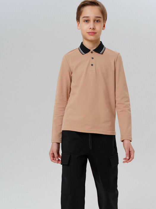 Классическое бежевое поло с длинным рукавом для мальчика