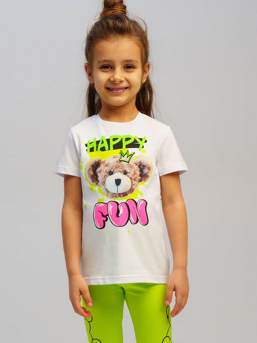 Футболка детская для девочки. Футболка с высоким содержанием хлопка 95%. Благодаря наличию эластана в составе ткани изделие проще в уходе и держит форму. Модель выполнена из качественного и приятного на ощупь трикотажа.