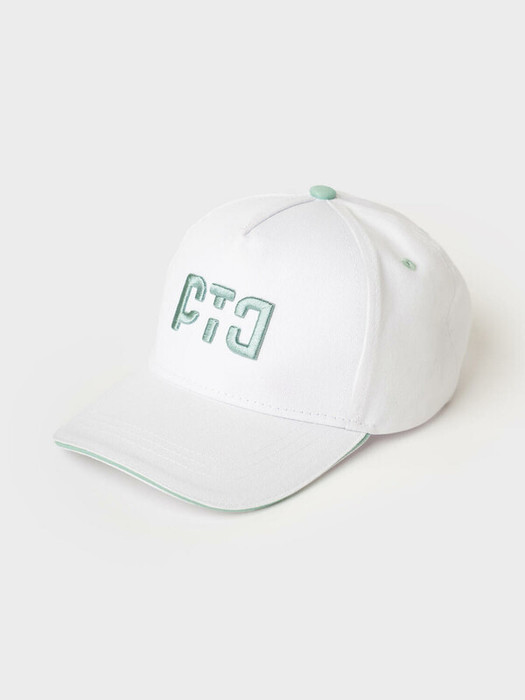 Бейсболка детская для девочки. Классическая с изогнутым козырьком. На передней панели выполнена объёмная вышивка в мятном цвете. В верхней части – маленькая декоративная кнопка, по бокам – вентиляционные отверстия. Объём можно отрегулировать с помощью металлической застежки-пряжки сзади.