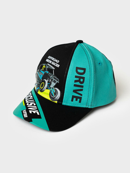 Детская бейсболка для мальчика. Модель выполнена из хлопкового текстиля, с изогнутым козырьком и регулируемой застежкой на липучке сзади. На передней части размещён красочный принт.
