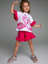 Комплект: футболка, шорты. Высокое содержание хлопка 95%. Благодаря наличию эластана в составе ткани, изделие проще в уходе и держит форму. Оптимальная посадка: шорты не сползают при движении. Эластичный пояс со шнурком.