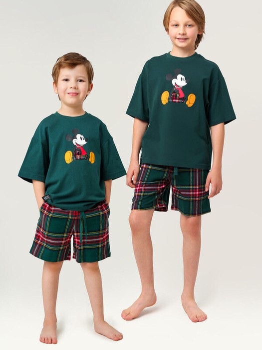 Модная зелёная пижама с клетчатыми шортами для мальчика от PlayToday — практичная и удобная одежда для сна, игр и отдыха дома.