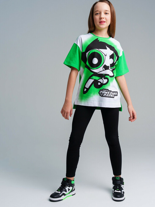 Комплект: футболка, легинсы из качественного и приятного на ощупь трикотажа джерси. Высокое содержание хлопка 95%. Благодаря наличию эластана в составе ткани изделие проще в уходе и держит форму. Футболка прямого кроя. Пояс - эластичная резинка.