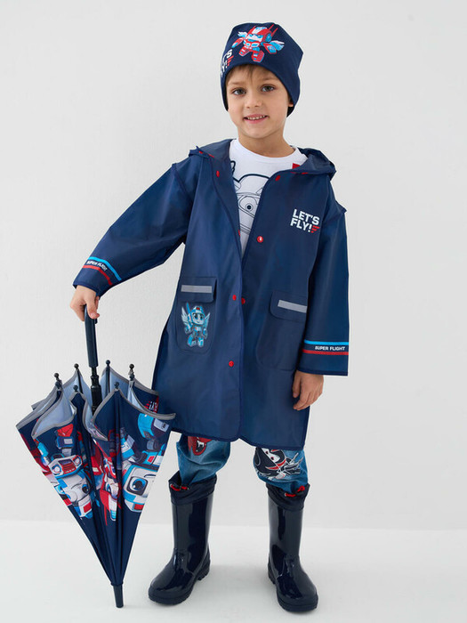 Дождевик детский с козырьком для мальчика. Застежка на кнопки. Материал ЭВА. Без подкладки. Модель имеет спереди два накладных кармана с клапаном. Сзади имеется объемный клапан на кнопках для изменения объема плаща под рюкзак. Есть светоотражающие элементы спереди, сзади и на рукавах. Добавлена петелька под капюшоном с внешней стороны, чтобы остальные вещи на вешалке не намокали. Модель идеально сочетается с резиновыми сапогами и зонтом из коллекции. В комплекте идет непромокаемая сумочка.