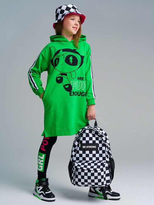 Платье из french terry с капюшоном. Манжеты в эластичный рубчик.