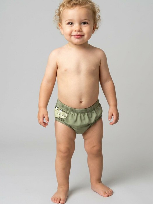 Плавки для малышей, разработанные с учётом ношения поверх памперса. Модель выполнена из мягкого трикотажа с эластичной резинкой по талии и ножкам для комфортной посадки. Дизайн украшен ярким принтом в виде крокодила: спереди — мордочка, а на спинке — туловище. Эластичная обработка по краям и мягкая ластовица обеспечивают удобство при носке и хорошее прилегание. Ткань устойчива к солнцу и солёной воде, благодаря UF-защите сохраняет насыщенность цвета и структуру волокон.