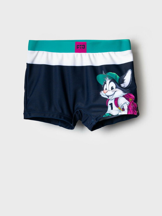 Плавки-шорты детские средней длины, прилегающего силуэта для мальчика. Изготовлены из эластичного трикотажа, с подкладкой для большего комфорта. Ткань устойчива к солнцу и солёной воде, благодаря UF-защите сохраняет насыщенность цвета и структуру волокон. В поясе — удобная резинка и регулируемый шнурок.
