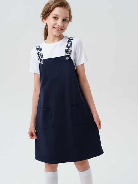 Школьный трикотажный сарафан для девочки подростка. Синий сарафан свободного силуэта идеально подойдет для гардероба в школу. Сарафан для школы выполнен из ткани с высоким содержанием вискозы, что обеспечивает максимальный комфорт для школьницы во время занятий. Вискоза отличается высокой гигроскопичностью - она впитывает влагу и отлично сохраняет тепло. Отстёгивающиеся бретели. Удобные боковые накладные карманы.