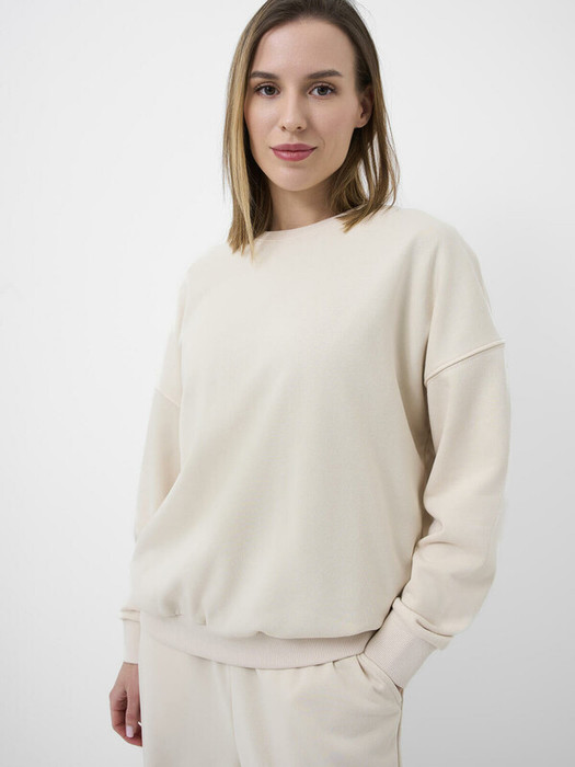 Женский молочный свитшот оверсайз. Выполнен из хлопкового футера без начеса. Горловина, манжеты и низ изделия выполнены из эластичного риба, что обеспечивает комфортную посадку.