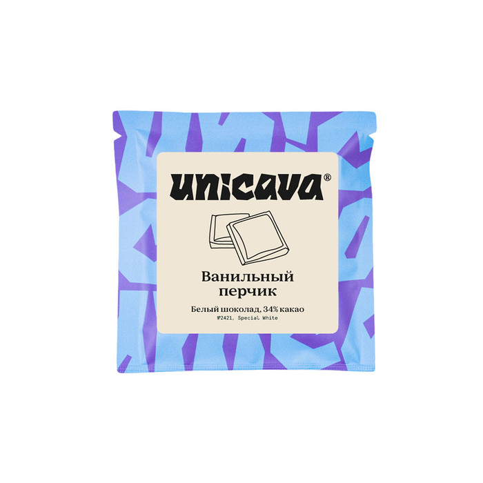По-настоящему пикантный белый шоколад. Сливочный, сладко-солёный, с деликатной остротой. Внутри — драже из маринованного чёрного перца в тёмном шоколаде, а в текстуре плитки — крупно смолотый кампотский перец. Вместе они создают пряный, объёмный, многослойный вкус.