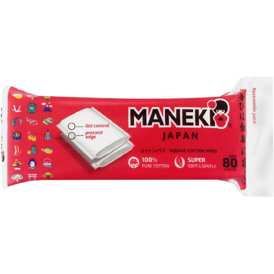 Подушечки ватные косметические прямоугольные с пресс-линиями JAPAN MANEKI RED Square cotton pads 5*6 см (полиэт. упак) 80шт.