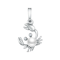 Подвеска из серебра с культивированным жемчугом и фианитами родированная - Краб