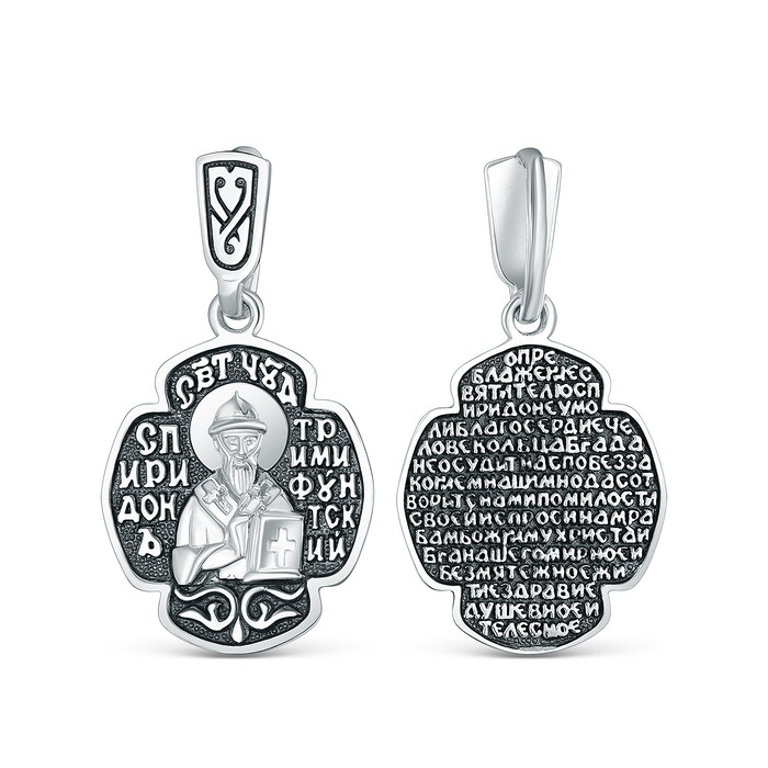 Подвеска-икона из чернёного серебра - св.Спиридон Тримифунтский 925 пробы 3-602ч