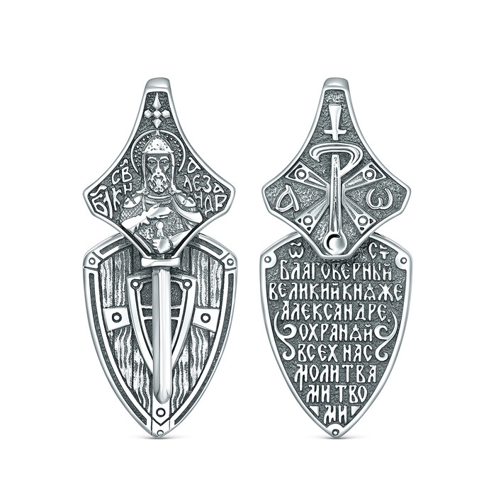 Подвеска из чернёного серебра - Александр Невский, Хризма (подвижный щит) Пч-006