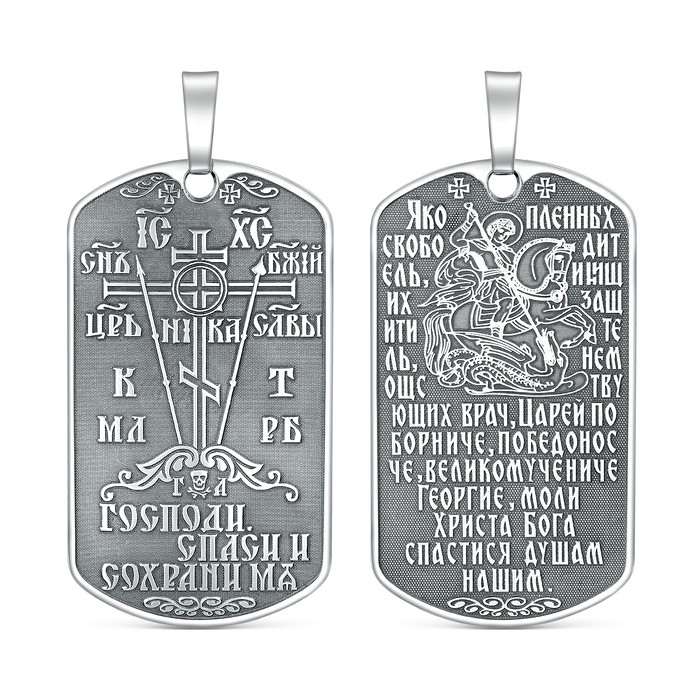 Подвеска из чернёного серебра - Крест голгофа и Георгий Победоносец ИБ-012-01