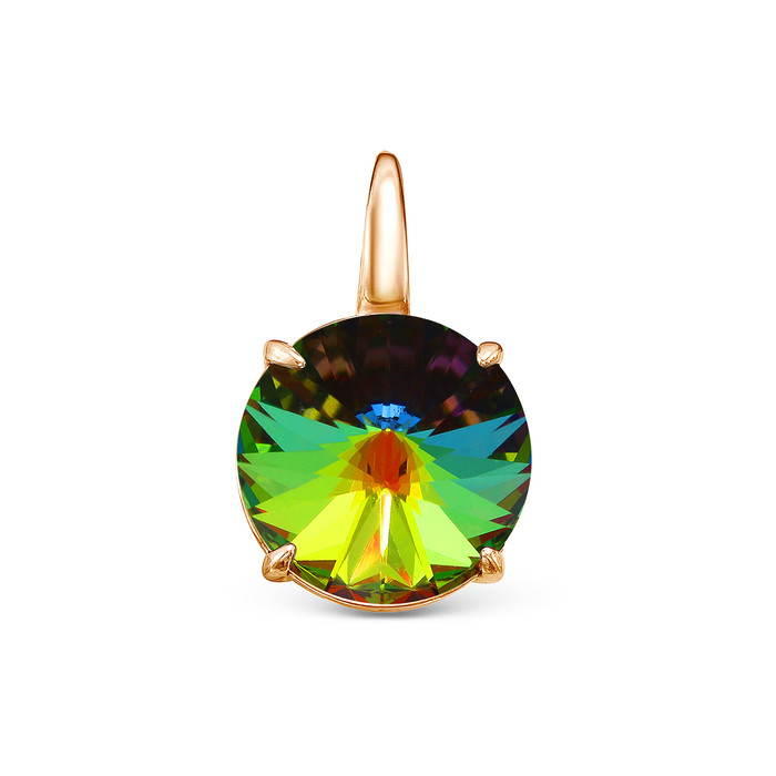 Подвеска из золочёного серебра с кристаллом премиум австрия Мистик зелёный 925 п