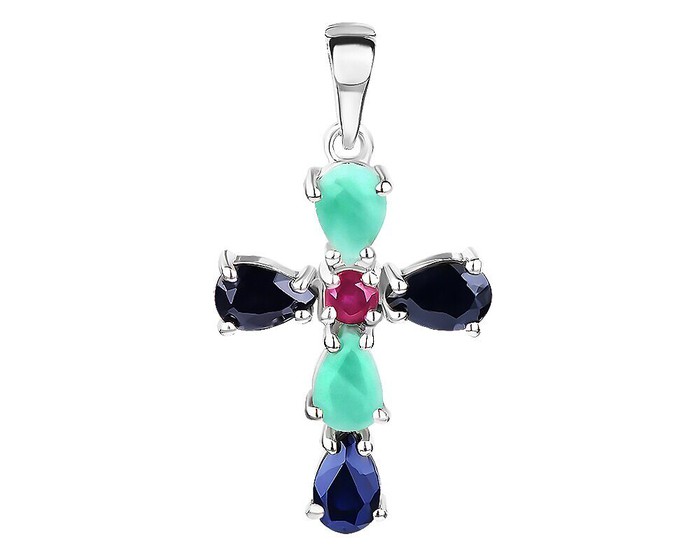 Подвеска, арт.653167 Серебро Серебро 925, 2,2 гр., изумруд берилл , рубин корунд , сапфир корунд