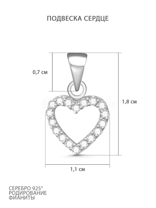 Совместные покупки Нижний Тагил Ювелирные украшения и бижутерия Подвески — Подвеска Сердце из серебра с фианитами родированная