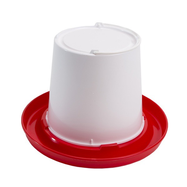 Поилка изготовлена из пластика, состоит из бачка-конуса и крышки-дна. Вода заливается в бачек,плотно закрывается крышкой и перевернув ставится на нее. Подходит для цыплят и взрослой птицы. Объем: 5 л