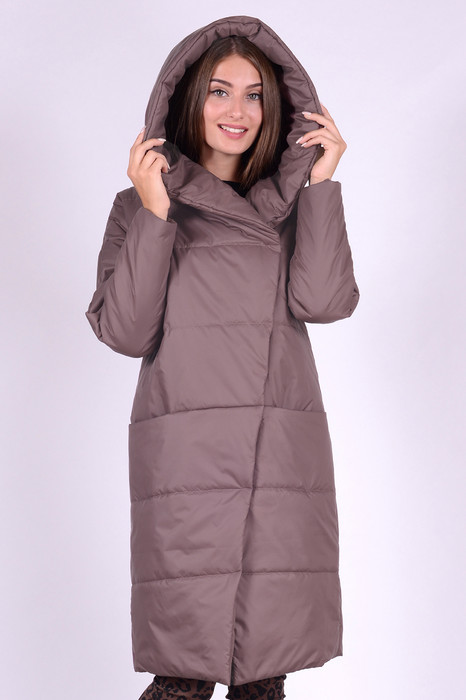 Ультрамодное демисезонное женское полупальто-"одеяло" с большим шалевым капюшоном, удлиненным по переду низом и асимметричной застежкой на потайные кнопки. При желании, капюшон легко трансформируется в воротник-стойку. Карманы расположены в стежке . Рост фотомодели 173 см Длина пальто по спинке ок.98см. Длина рукава от горловины ок.71 см. Рост 170 см Состав: полиэстер - 100%, утеплитель: Air Twin Light 100 г/m2 р-ры 42-52 цвет: кофе Цвет одежды может незначительно отличаться от оригинала.
