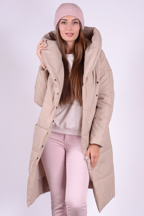 Ультрамодное демисезонное женское полупальто-"одеяло" с большим шалевым капюшоном, удлиненным по переду низом и асимметричной застежкой на потайные кнопки. При желании, капюшон легко трансформируется в воротник-стойку. Карманы расположены в стежке . Рост фотомодели 173 см Длина пальто по спинке ок.98см. Длина рукава от горловины ок.71 см. Рост 170 см Состав: полиэстер - 100%, утеплитель: Air Twin Light 100 г/m2 цвет: бежевый