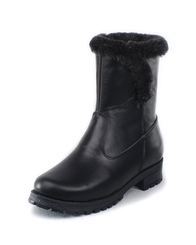 Совместные покупки Нижний Тагил Женская обувь Ботинки — Полусапожки женские на литой подошве Черные, кожа, молния с опушкой